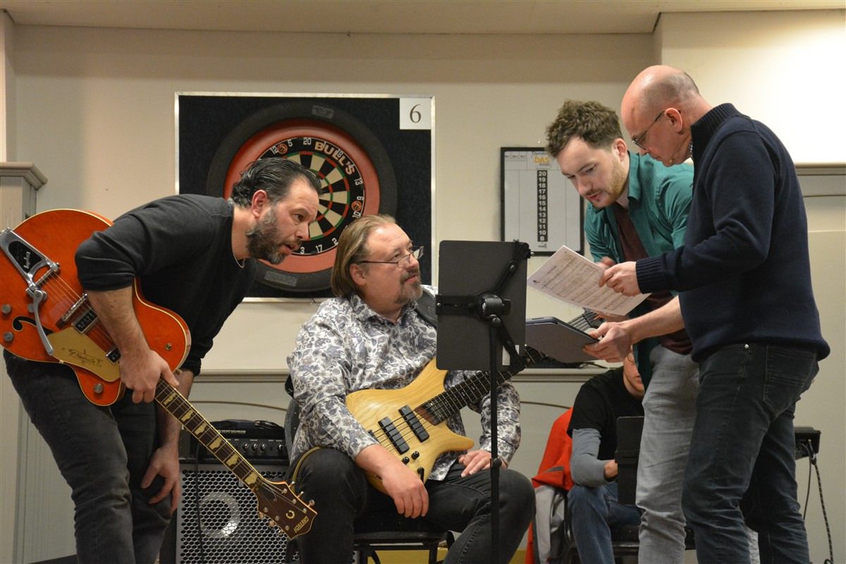De voorbereiding op de Christmas Party is in volle gang. Tijdens de repetitie van donderdag 20 november waren de leden van de begeleidende combo evenals solist Sandor Stürbl aanwezig in het repetitielokaal van het Steyler mannenkoor. De combo bestaat uit: Len David (gitaar), Mathy Hoessels (drum), Thomas Gruijters (bas}, Toon Konings (piano) en Vriendenkringlid Wilbert Alberts (keyboard).