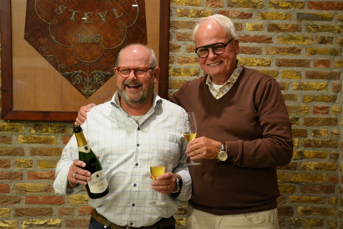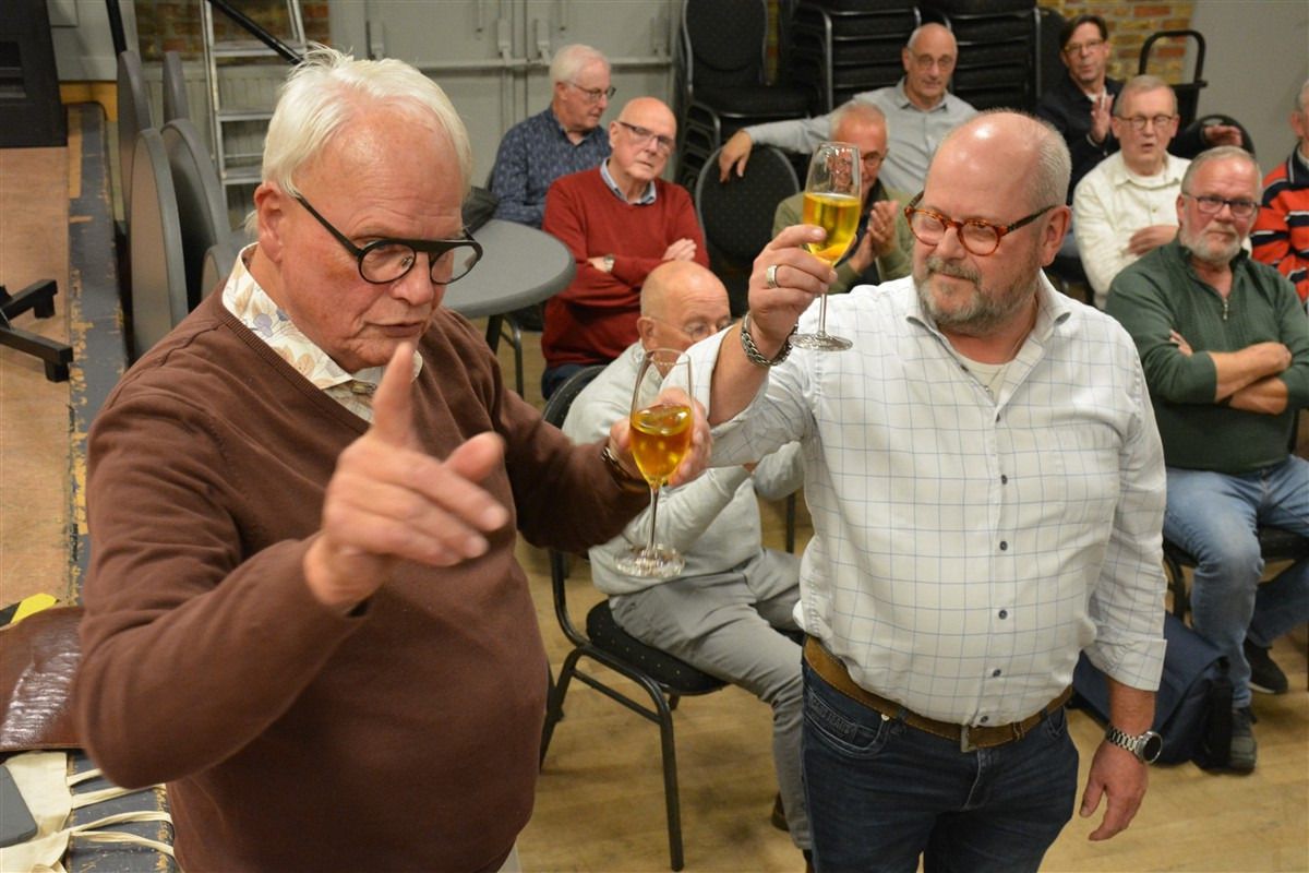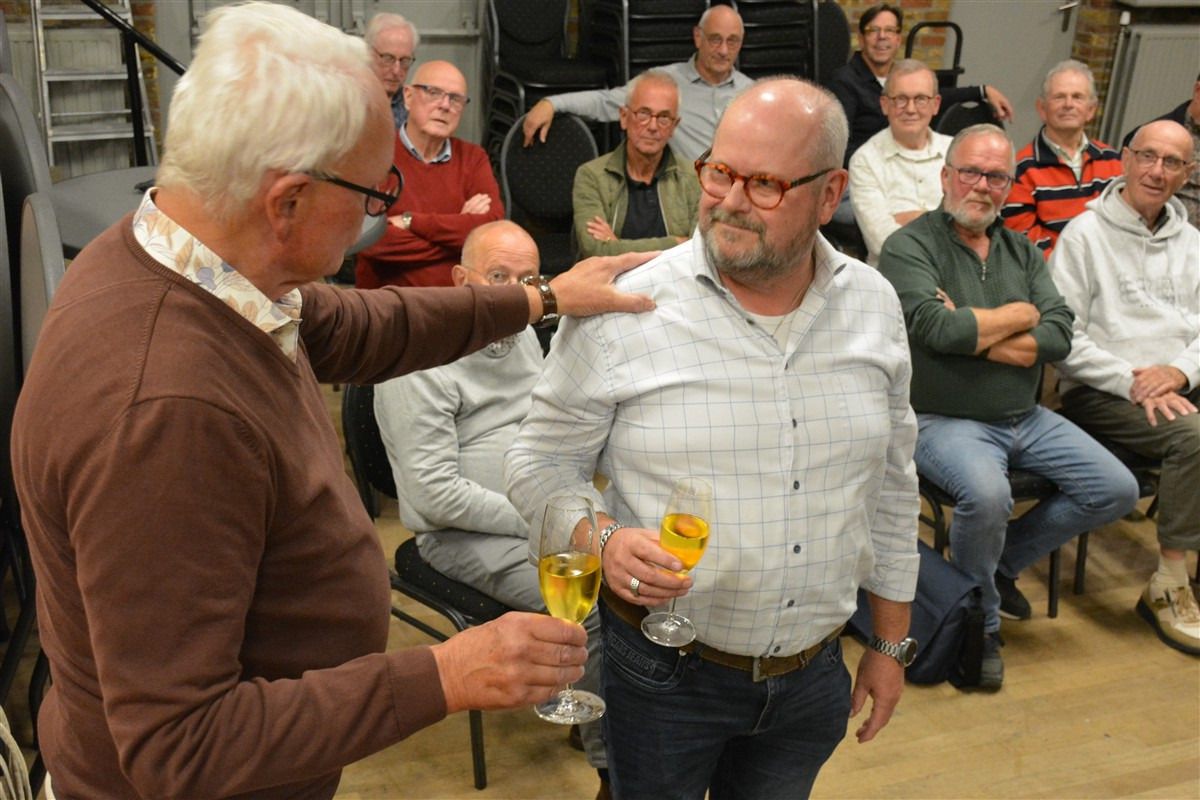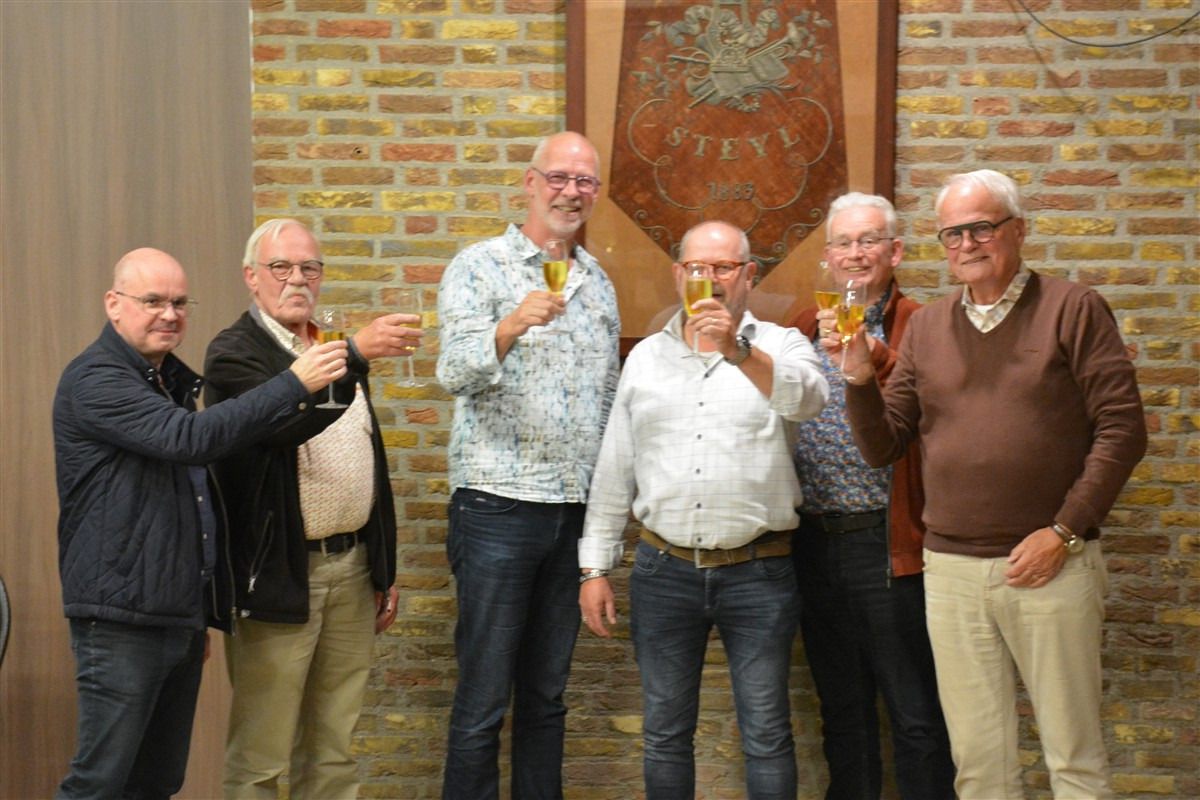 Uiteraard werd door de bestuursleden en dirigent Jan Mertens een toast uitgebracht op de nieuw te benoemen voorzitter.